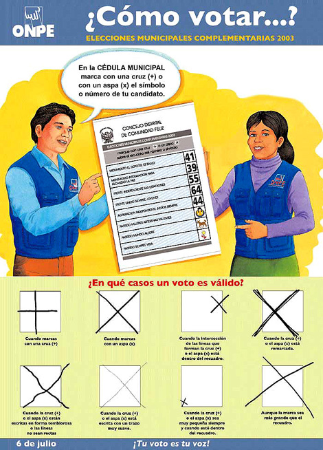 Público Objetivo: Electores y electoras de los 13 distritos participantes Páginas: 01 Formato: 50 x 70 cm. Tiraje: 10,000 ejemplares Auspicio: Recursos ordinarios Impresión: Tarea Asociación Gráfica Educativa